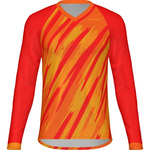 Maillot coupe classique manches longues Parfaitement adapte a la pratique du BMX, MX et VTT Enduro Impression int?grale en sublimation sans limite de couleurs + FLUO Col en V ou en rond imprim? ou en ?lastique bord c?te